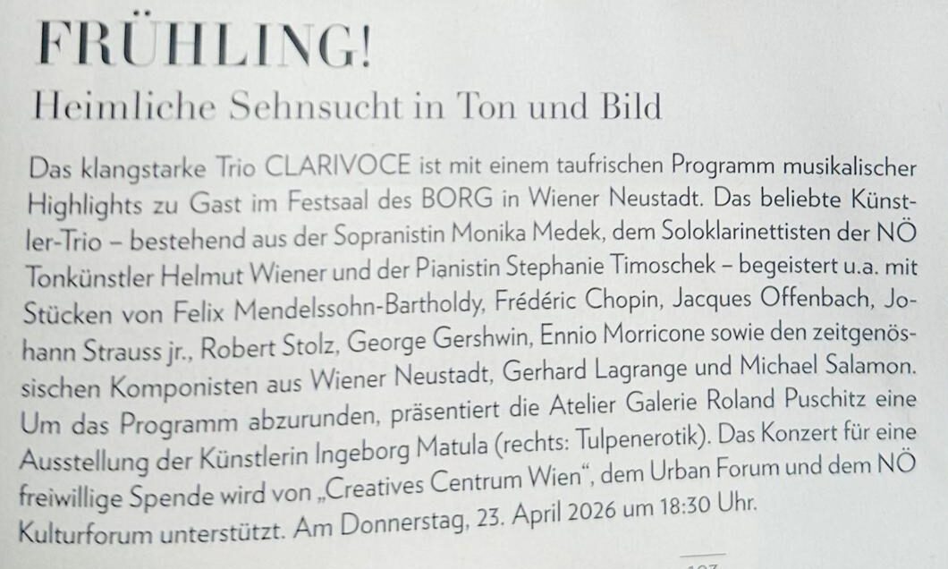 Wir freuen uns sehr über eine schöne, große Ankündigung in dem beliebten Hochglanz-Magazin DIE NIEDERÖSTERREICHERIN in der April-Ausgabe 2026! Danke!!
