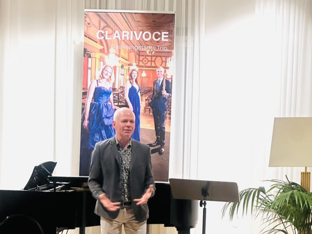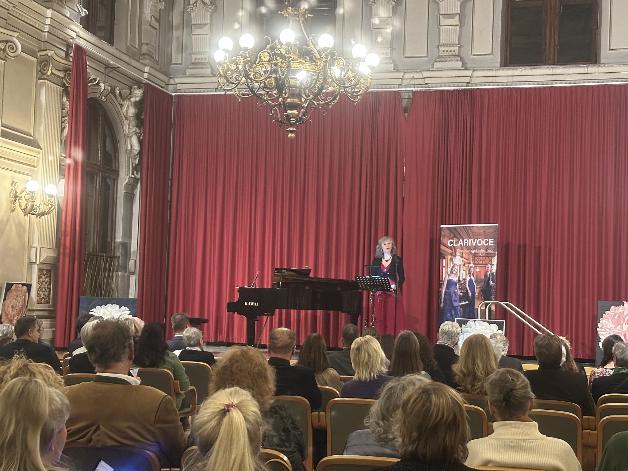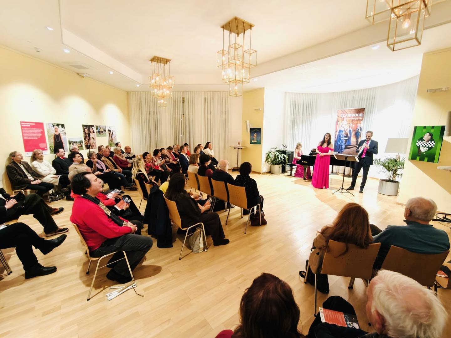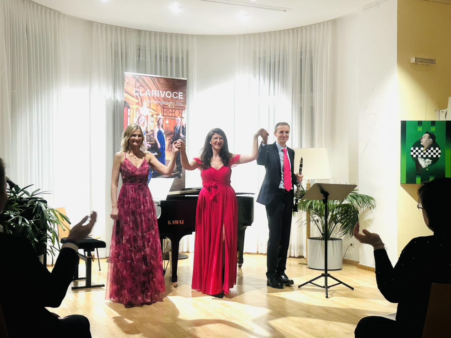 Die Romanzen von unserem Trio CLARIVOCE liefen am 25. September 2025 stimmungsvoll über die schöne Bühne von Rudolfsheim-Fünfhaus! Danke für die schöne Zusammenarbeit mit Galerist Roland Puschitz, der eine hervorragend schöne Ausstellung von Giuseppe Fiore zeigte. Ebenso herzlichen Dank an Andre Blau für eine wunderschöne Lesung, sowie den Komponistinnen und Komponisten des Abends! Karen de Pastel, Robert Werner, Paul Hertel, Stefan Pelzl und Shane Woodborne! Danke auch an unsere Sponsoren und Partner: Bezirk, CCW und Gasteiner! Und natürlich unsere guten Seele und Managerin Maria-Theres Berger!