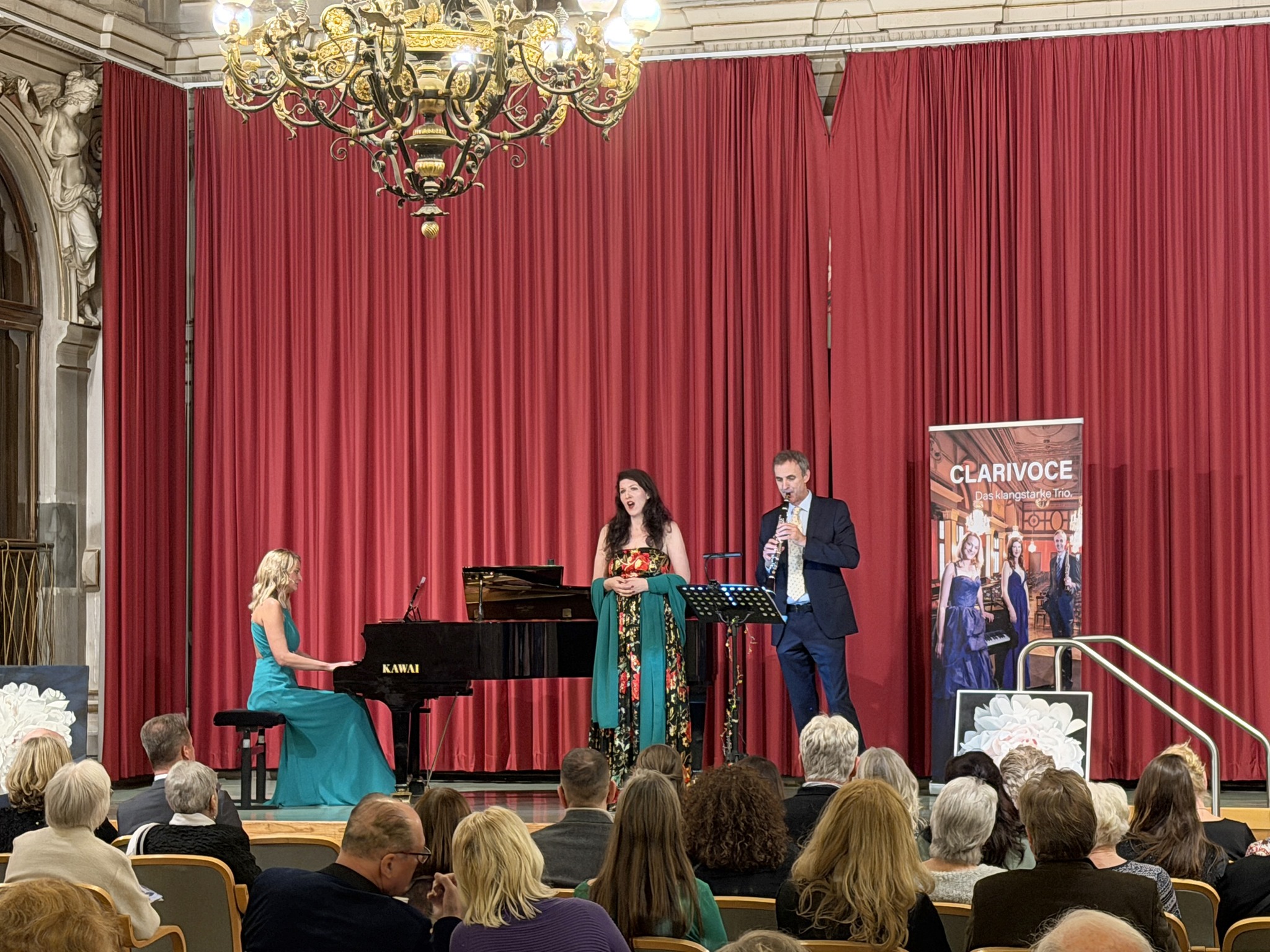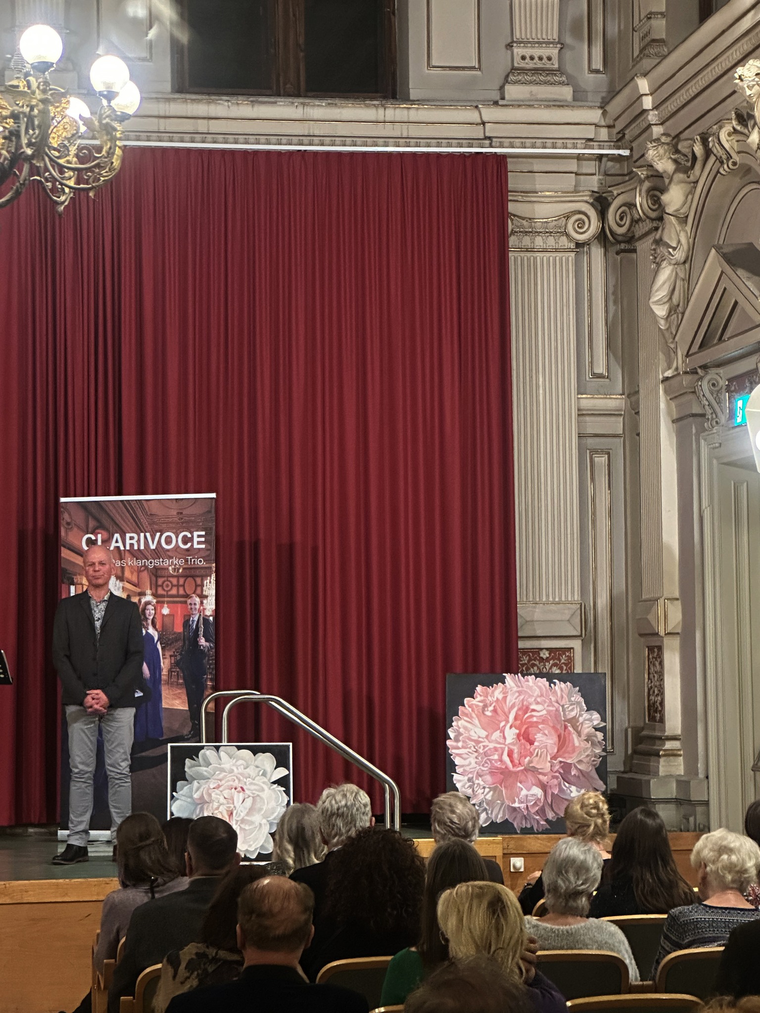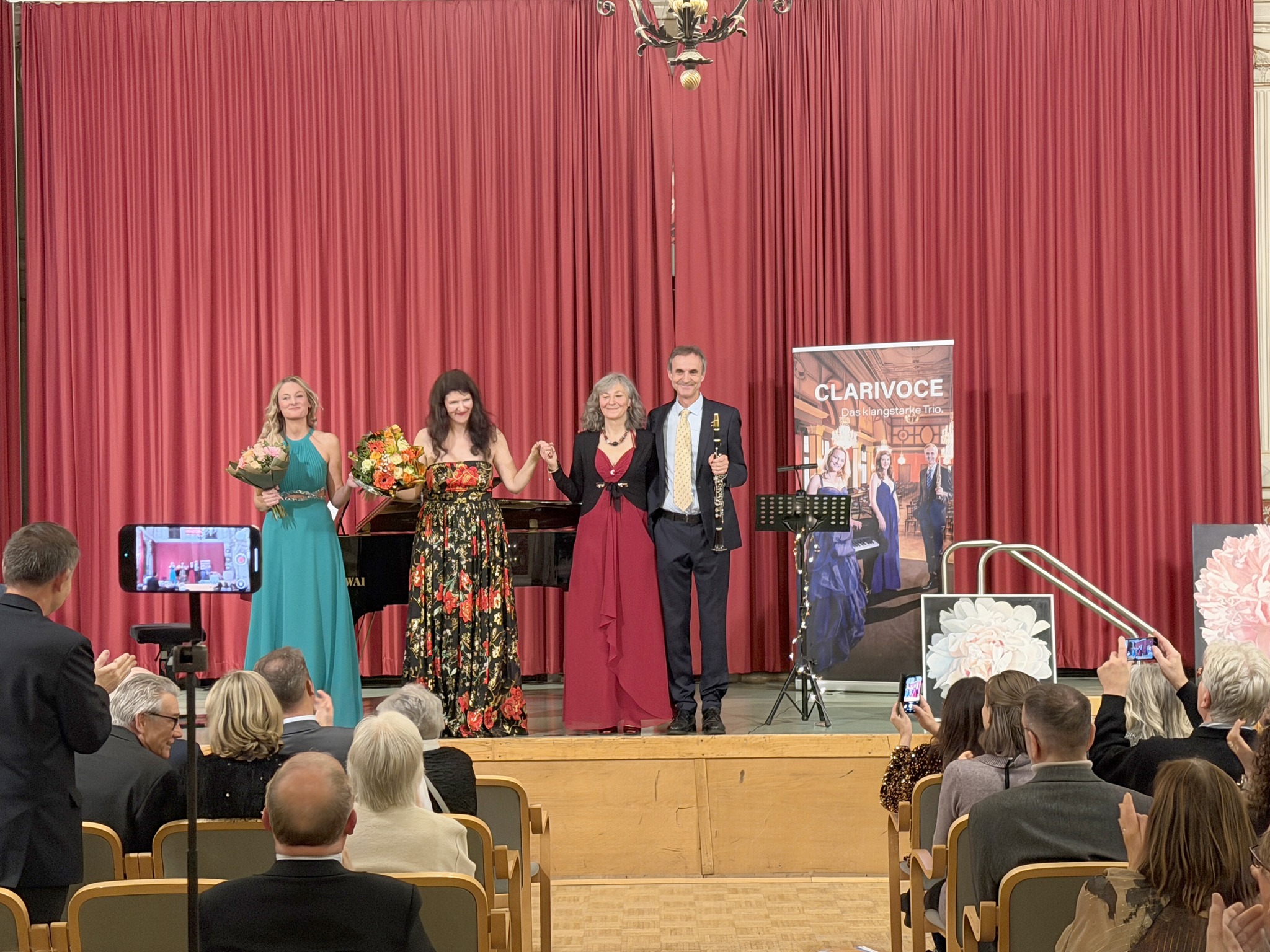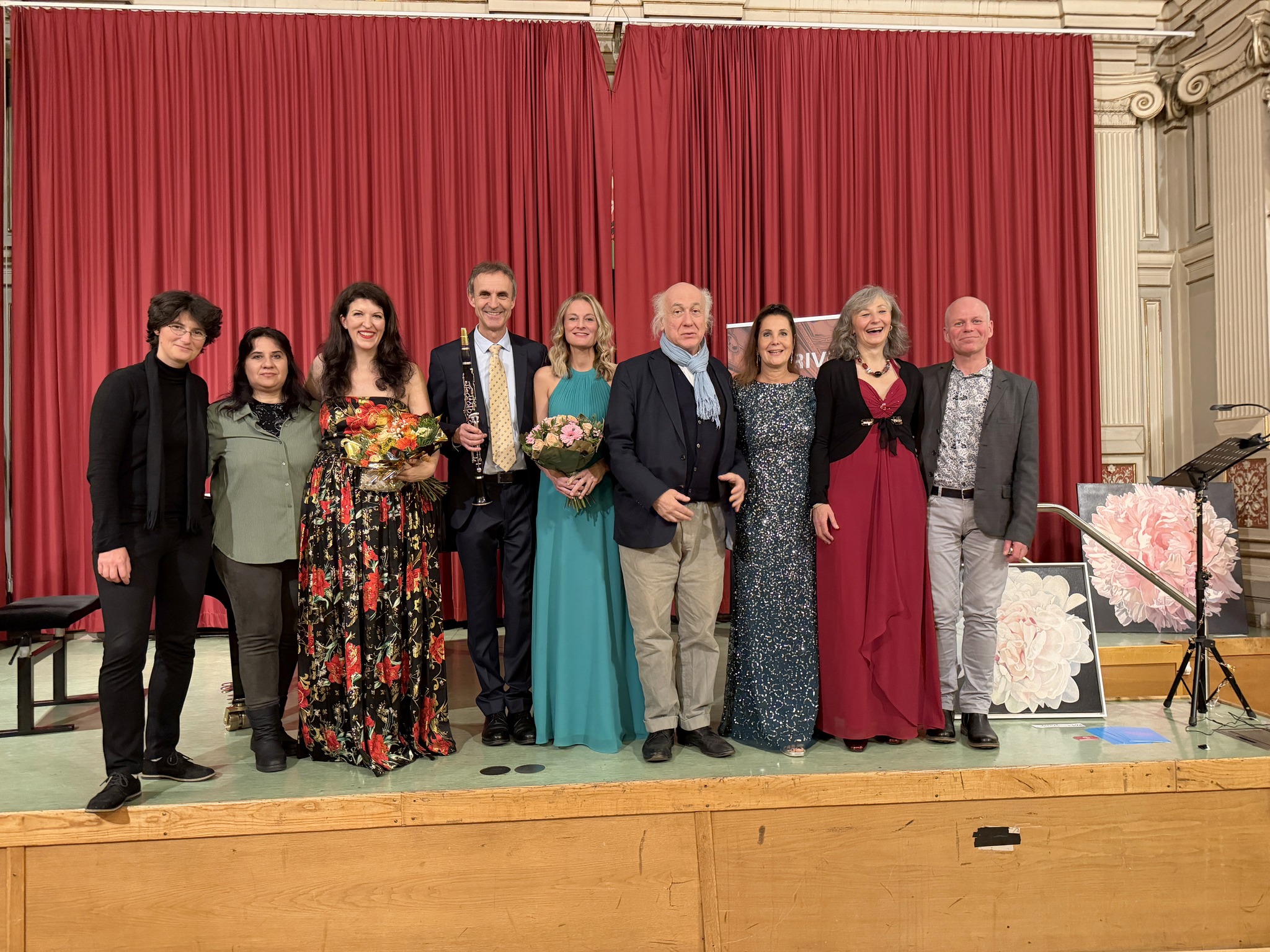 Die Romanzen von unserem Trio CLARIVOCE liefen am 25. September 2025 stimmungsvoll über die schöne Bühne von Rudolfsheim-Fünfhaus! Danke für die schöne Zusammenarbeit mit Galerist Roland Puschitz, der eine hervorragend schöne Ausstellung von Giuseppe Fiore zeigte. Ebenso herzlichen Dank an Andre Blau für eine wunderschöne Lesung, sowie den Komponistinnen und Komponisten des Abends! Karen de Pastel, Robert Werner, Paul Hertel, Stefan Pelzl und Shane Woodborne! Danke auch an unsere Sponsoren und Partner: Bezirk, CCW und Gasteiner! Und natürlich unsere guten Seele und Managerin Maria-Theres Berger!